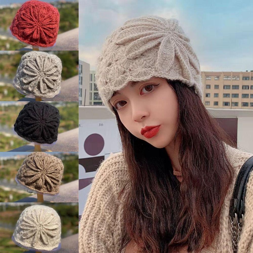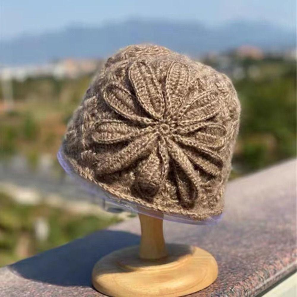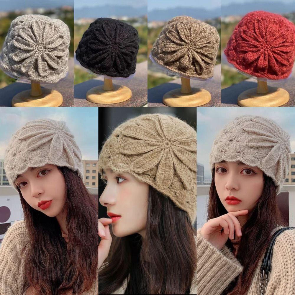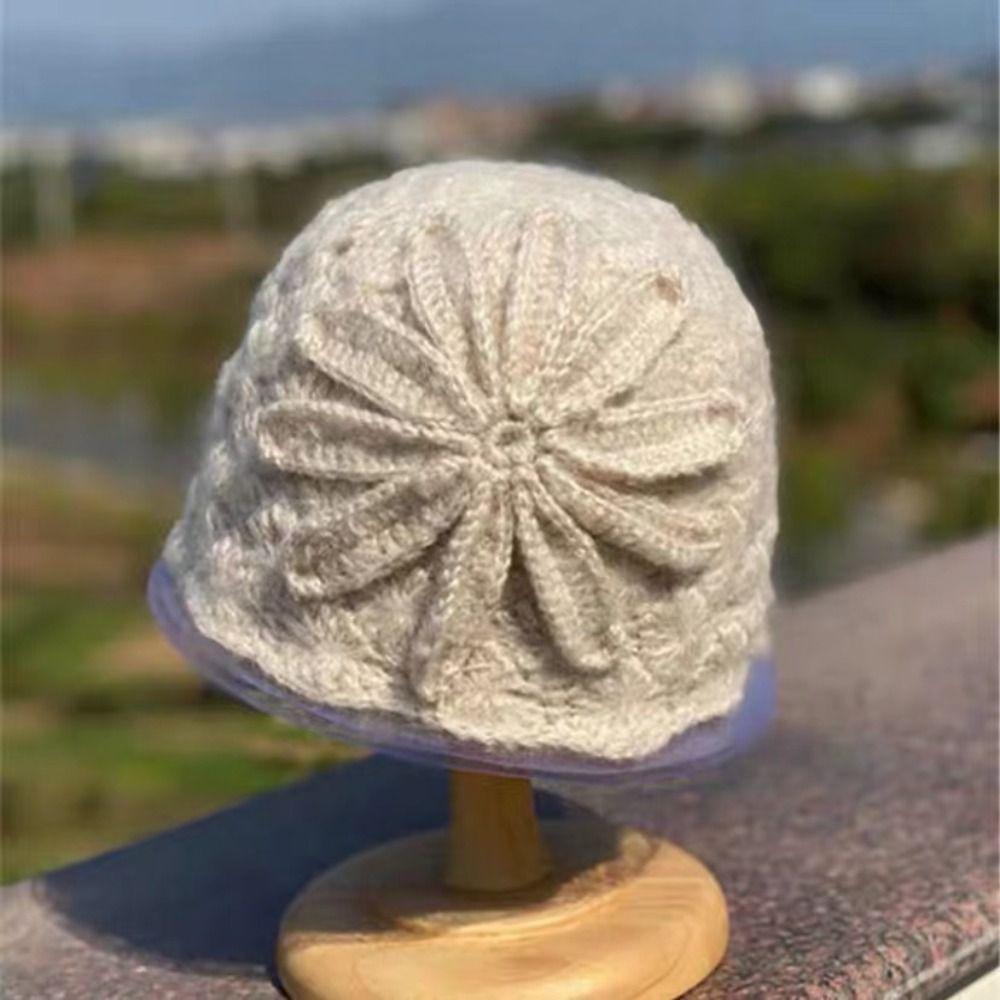 Artistic Hollow Toe Cap Lace Flower Basin Hat Fashionable Knitted Woolen Hat Women