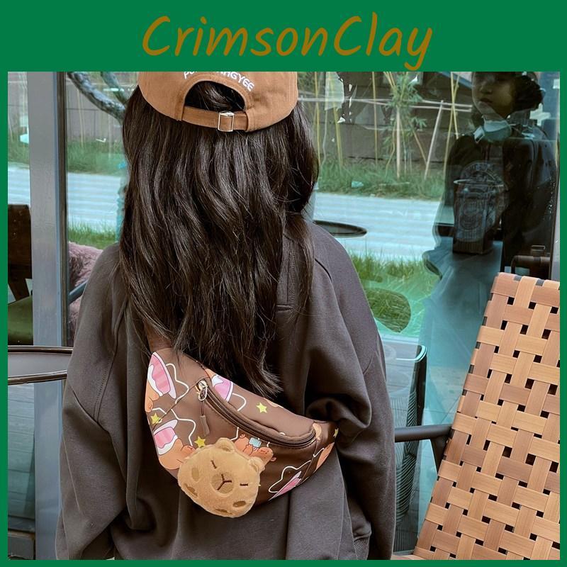 Плюшевая сумка-кроссбоди на грудь с принтом капибары, детская мультяшная поясная сумка для отдыха