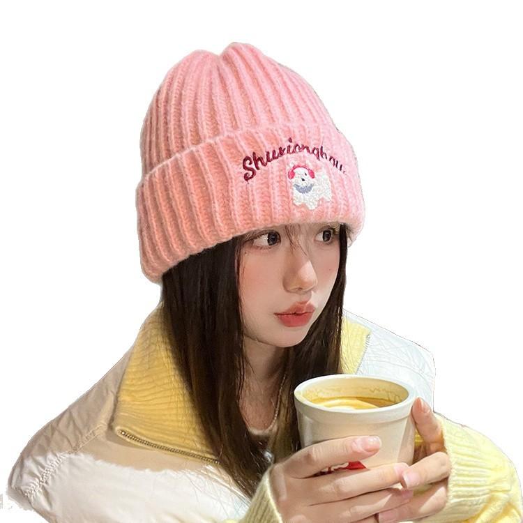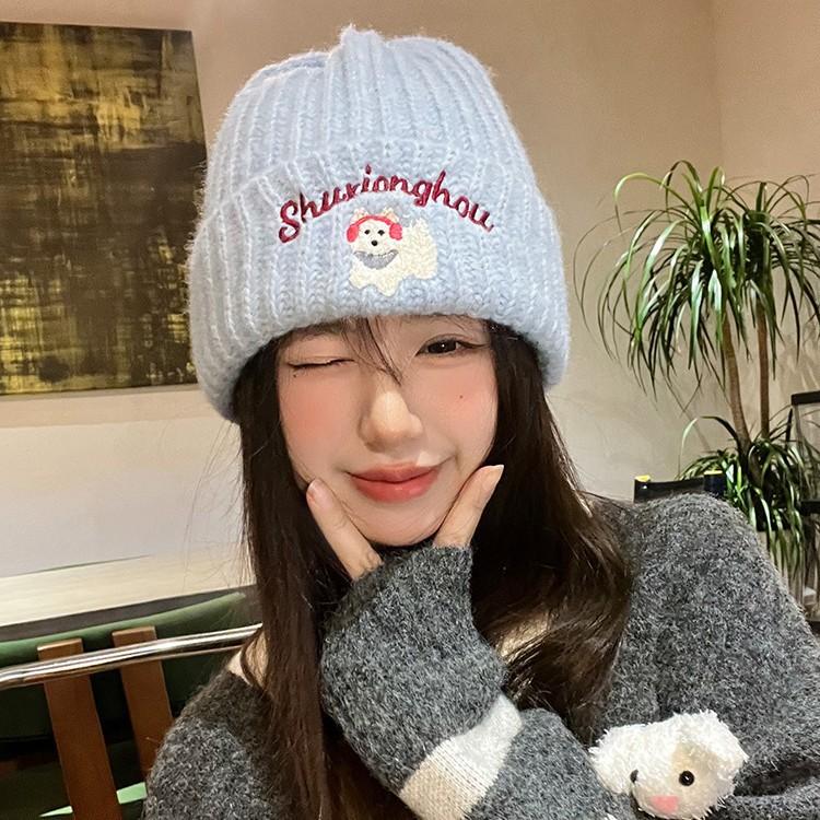 Cute Cartoon Puppy Hat for Women Korean Version New Autumn and Winter Embroidered Knitted Woolen Hat for Men Warm and Versatile