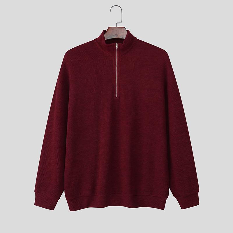INCERUN Весенние мужские пуловеры с высоким воротником, длинным рукавом, на молнии, текстурной рельефной вязки