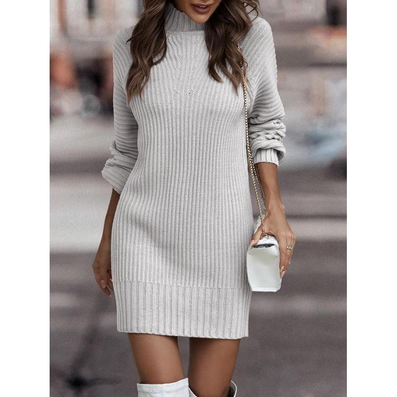 Модное платье-свитер с длинным рукавом и высоким воротом однотонной расцветки для женщин на осень и зиму