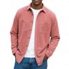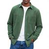 Осень Зима Мужская Однотонная Вельветовая Рубашка с Двойным Карманом на Пуговицах с Длинным Рукавом Повседневная