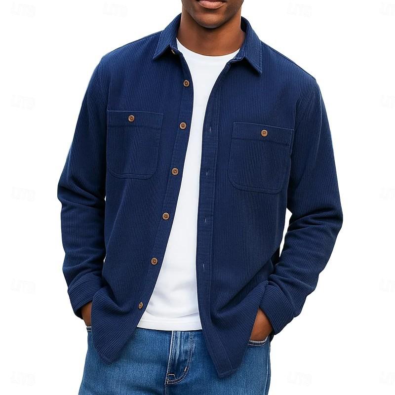 Осень Зима Мужская Однотонная Вельветовая Рубашка с Двойным Карманом на Пуговицах с Длинным Рукавом Повседневная — купить товар онлайн с бесплатной доставкой по всему миру!