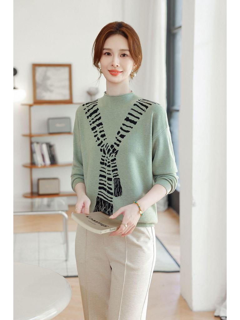 Вязаный свитер в корейском стиле ретро из шерсти прилегающего силуэта для женщин - Универсальный базовый слой на осень/зиму