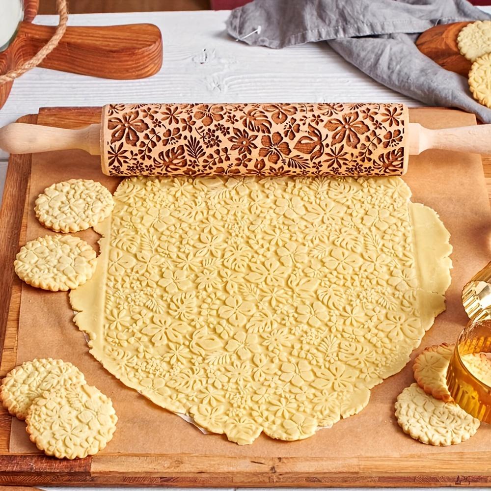 1 шт., Скалка с цветами и листьями, Деревянный ролик для теста с тиснением, для пиццы, пирога, печенья и многого другого, Кухонная утварь, Кухонные гаджеты, Кухонные аксессуары