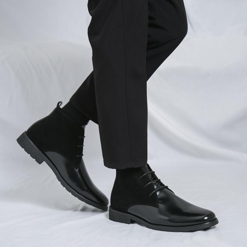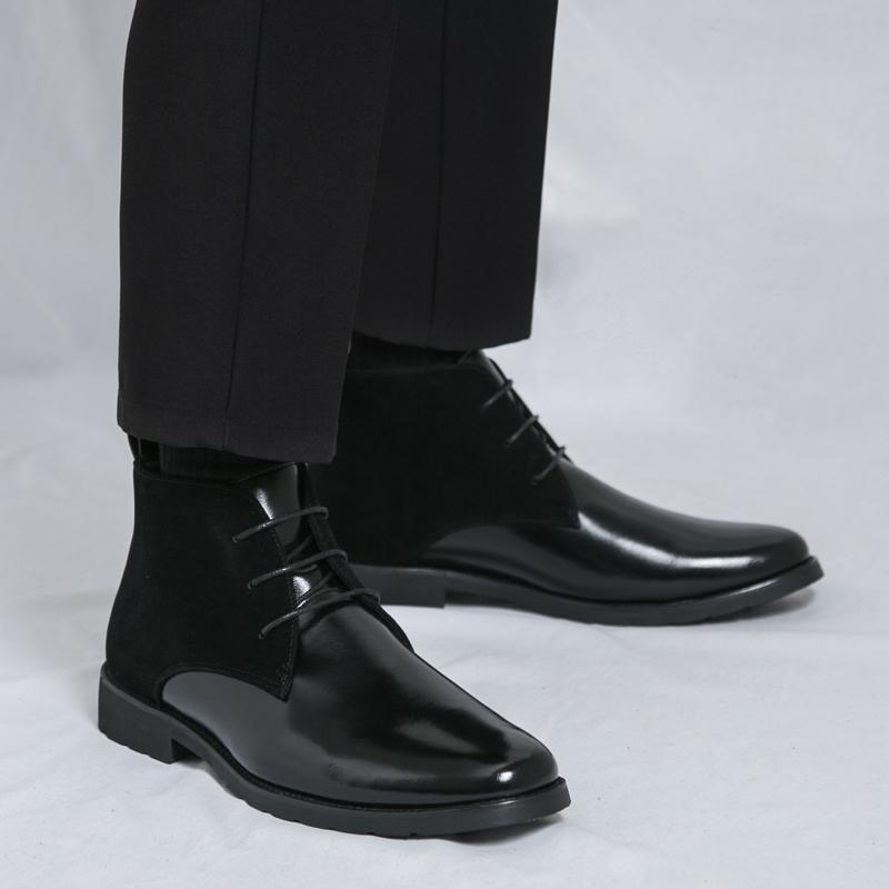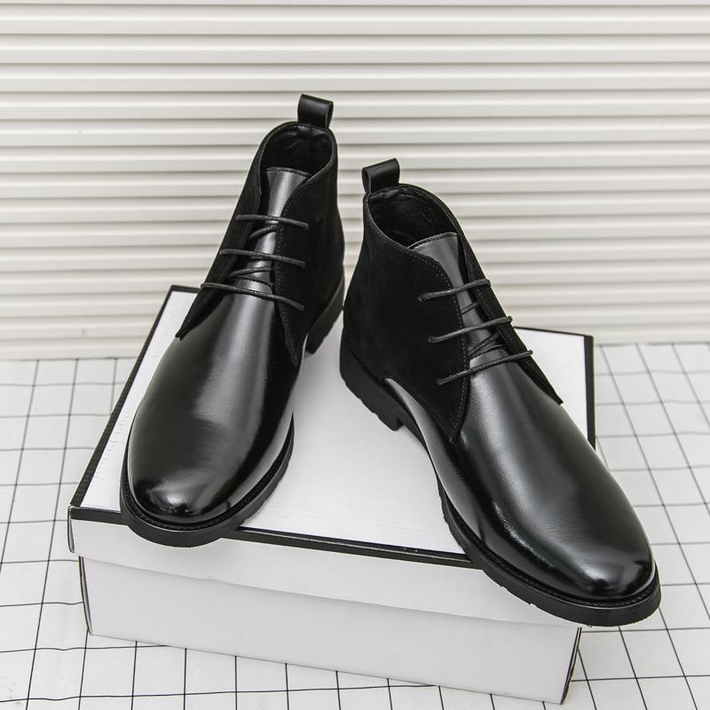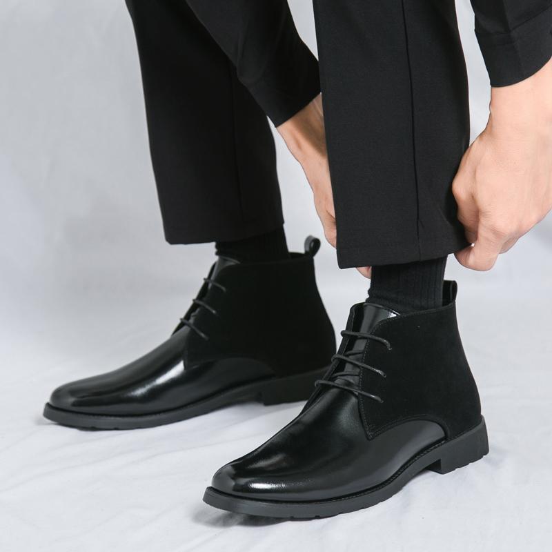 Модные кожаные ботинки с высоким голенищем Бренд Удобные и мягкие Мужские лоскутные ботильоны Деловые Повседневные Мужские кожаные ботинки