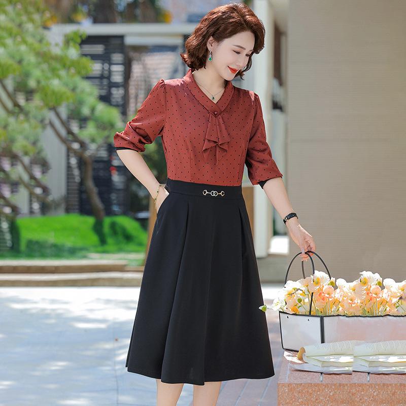 Модное осеннее платье с длинным рукавом, имитирующее двойку, для женщин среднего возраста 2025