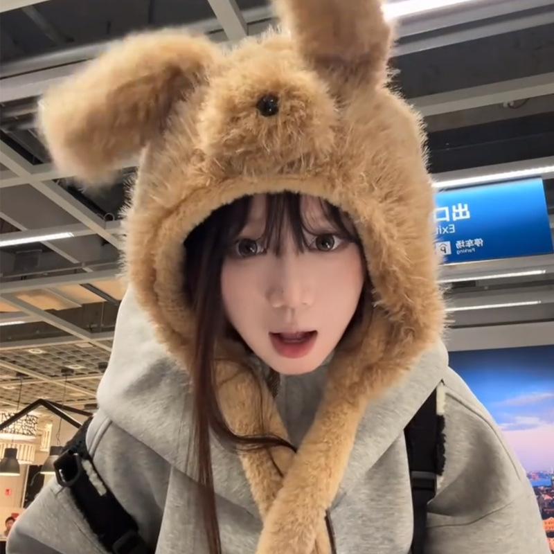 Пушистая шапка с ушками щенка с подвижными ушами для женщин Зимняя утолщенная ветрозащитная и теплая шапка-ушанка Стиль с защитой ушей