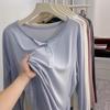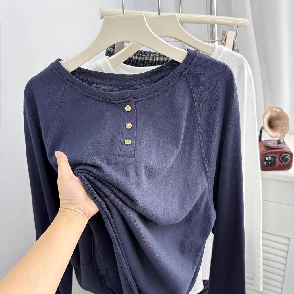 Женская футболка с длинным рукавом приталенного силуэта из чистого хлопка в корейском стиле с деталью в виде трех пуговиц - Осенняя повседневная одежда