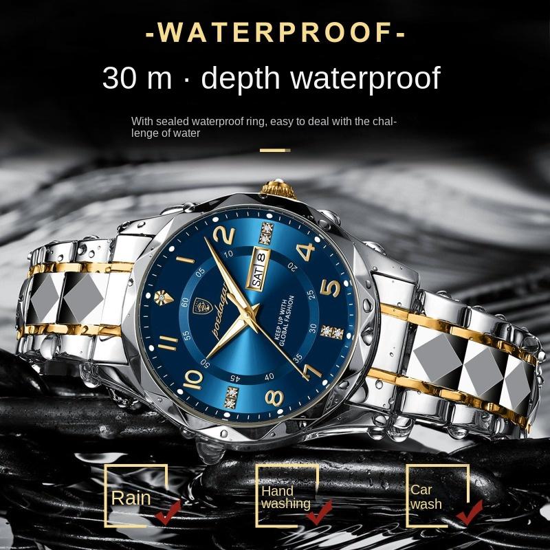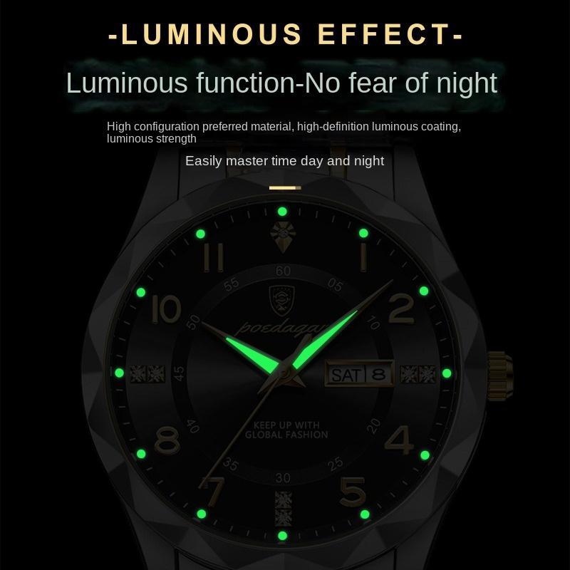 Топ Новые Мужские Часы Роскошные Двойной Календарь Инкрустированные Бриллиантами Водонепроницаемые Светящиеся Кварцевые Часы