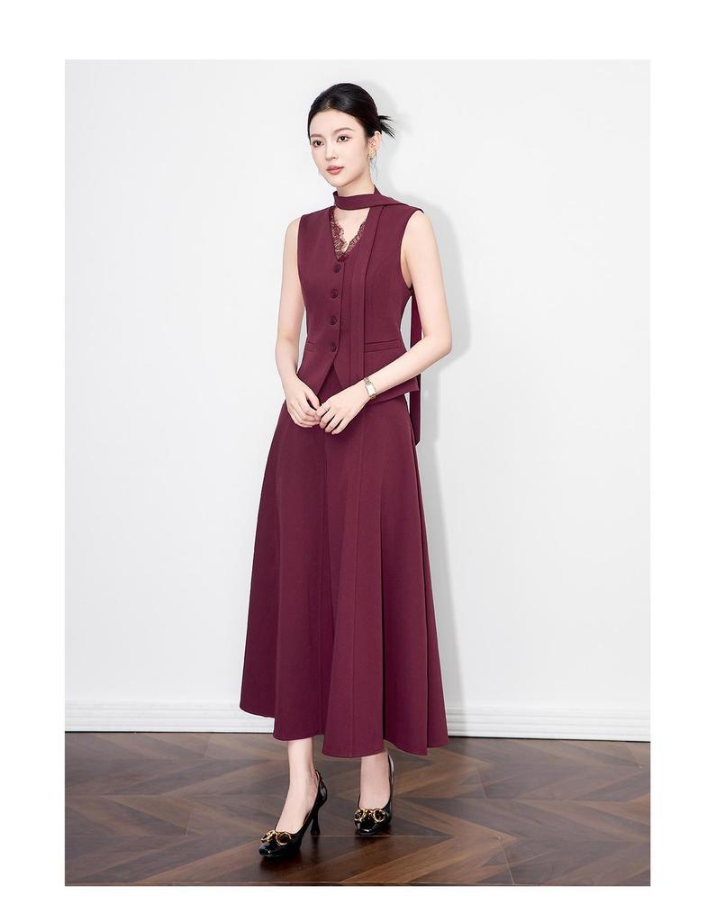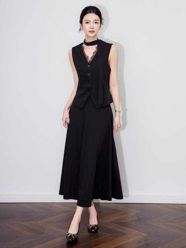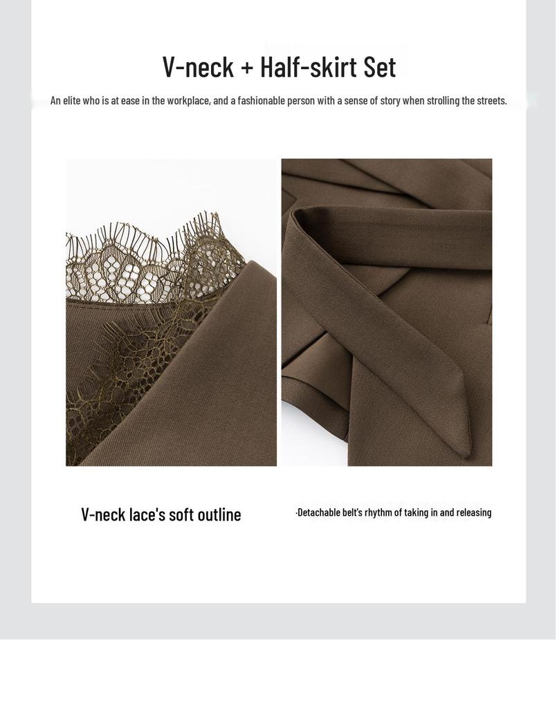 Элегантный кружевной жилет с V-образным вырезом и юбка миди - женский новый осенний стиль