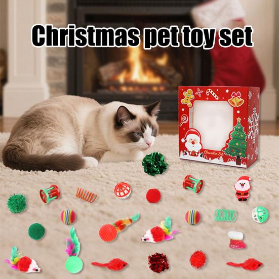 Многокомпонентный набор по выгодной цене: Набор кошачьих игрушек на рождественскую тематику для домашних кошек, включающий кошачью дразнилку, пружинные игрушки, мячик с перьями, пушистую мышку, шуршащие мячики, мячик с колокольчиком в виде тыквы, колокольчики-столбики, игрушки с кошачьей мятой, оленя и игрушку в виде рождественского носка и многое другое.