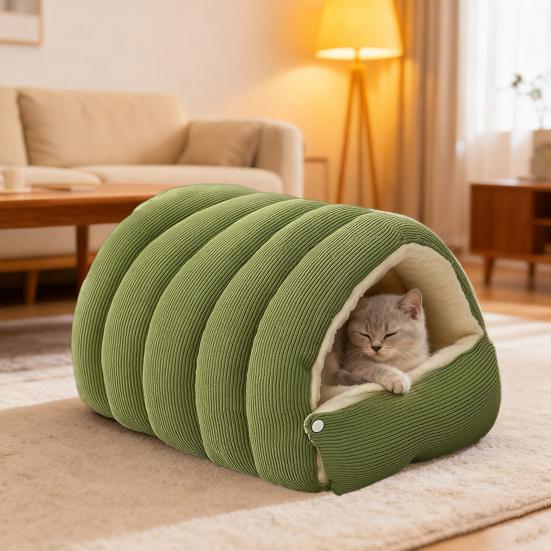 Закрытая конструкция помогает снять тревогу у нервных питомцев, обеспечивая чувство безопасности и спокойствия.. Съемный и моющийся чехол обеспечивает легкий уход, поддерживая кровать в чистоте и без запаха без усилий.. Незаменимый предмет для каждого владельца кошки, эта зимняя кошачья лежанка сочетает в себе функциональность и уютное очарование.