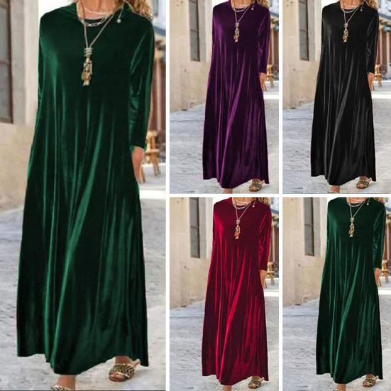 Женское бархатное платье Осеннее повседневное с круглым вырезом и длинными рукавами Платье макси свободного кроя для гостьи на свадьбу Коктейльное вечернее платье — купить товар онлайн с бесплатной доставкой по всему миру!