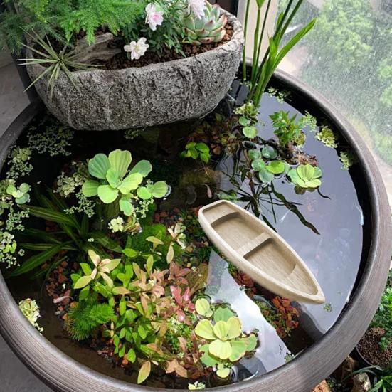 Благодаря своей простой и естественной текстуре, каноэ органично вписывается в ландшафтные элементы, такие как водные растения, песок и гравий, улучшая общую эстетику водного пейзажа.. Компактный размер и изысканный дизайн делают его универсальным украшением, которое можно использовать в различных обстановках.