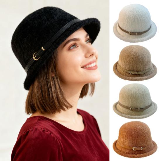 Оставайтесь в тепле и стильными с нашей шляпой-панамой из плюшевого материала для комфорта на весь день.. Простой, но элегантный дизайн дополнен изящной пряжкой ремня, добавляющей вашему образу нотку ретро-шарма..
