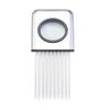 Ножи и вилки помогают получать равномерные ломтики благодаря зазору в 0,16 дюйма между каждым из них.. Изготовленный из прочной нержавеющей стали 304, этот слайсер для лука легко выдерживает ежедневные кухонные задачи.. Улучшите свой опыт нарезки с этим надежным и эффективным кухонным предметом первой необходимости.