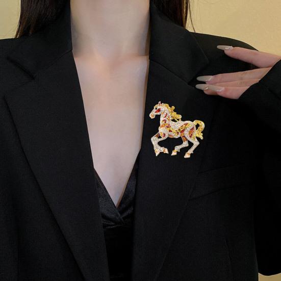 Красочная брошь в виде лошади, инкрустированная стразами, сплав, булавка на лацкан в виде лошади, брошь-пинка в виде животного, аксессуар для одежды, шляп, сумок, шарфов