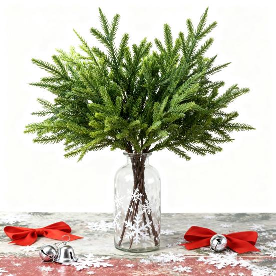 Прочный материал: Изготовленные из прочного пластика, эти искусственные сосновые ветви устойчивы к выцветанию и поломке, обеспечивая долговечную красоту для вашего праздничного декора.