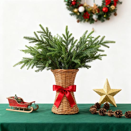 Простая компоновка: Легко стилизуйте свое пространство с помощью гибких сосновых веток, которые позволяют просто и приятно украшать, превращая подготовку к праздникам в легкое занятие.