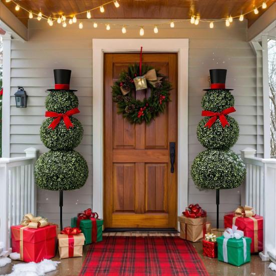 Прочная пластиковая конструкция: Этот топиарий «Снеговик», изготовленный из высококачественного пластика, отличается прочностью и привлекательной эстетикой, обеспечивая долговечное праздничное очарование.