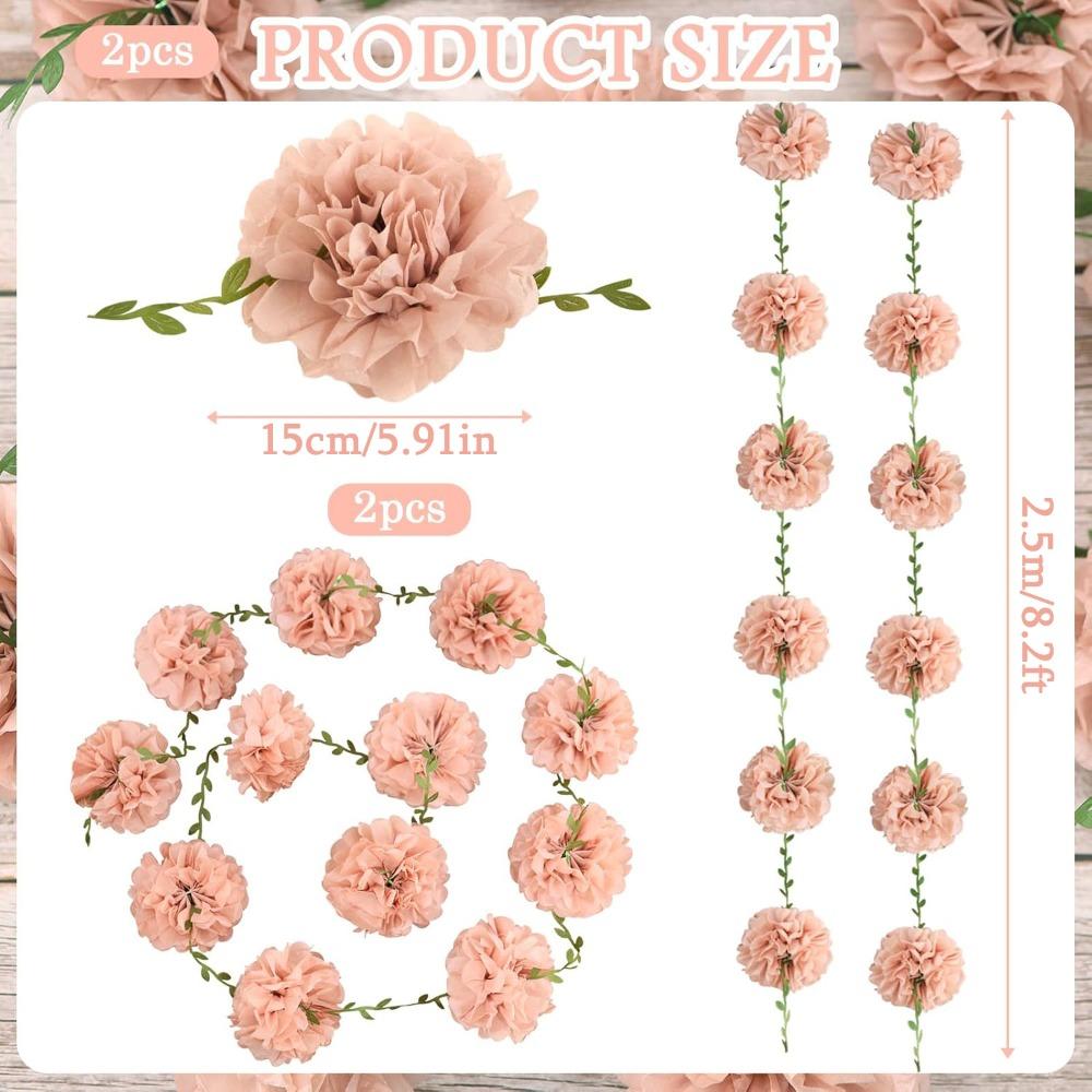 2 шт. Гирлянды помпоны из папиросной бумаги нюдового цвета, бумажные цветы для украшения на день рождения, свадьбу, помпоны из папиросной бумаги, цветы в стиле бохо, настенный декор, принадлежности для декора