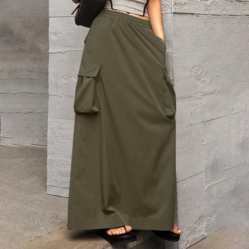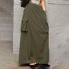 Женская миди с эластичной резинкой на талии, карманами и карманами, свободная однотонная полуюбка