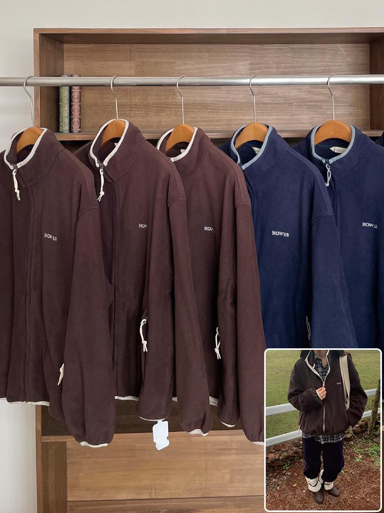 Женская ретро флисовая куртка с воротником-стойкой - стиль осени 2025