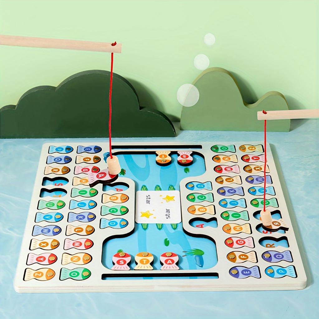Wooden Magnetic Fishing Game Children's Early Education Letter Cognition Matching Desktop Game Educational Toy