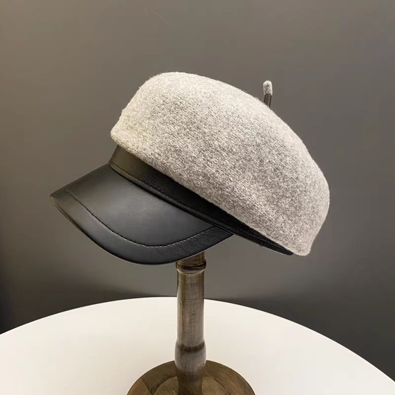 Простая восьмиугольная шляпа с козырьком из ПУ кожи, женская осенне-зимняя шерстяная кепка с козырьком, универсальная шляпа газетчика