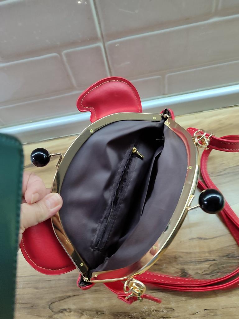 Спасибо, классная сумочка. Подкладка мягкая, не шуршит. Два отделения, один на молнии. Мягкий красный материал экокожи. Замок "поцелуйчик" мягко раскрывается. Мне понравилась. Выиграла за 1 рубль. Спасибо, джум, что дарите такие подарки! Играйте все!!! Всем повезёт!!! Я уже много чего выигрывала и надеюсь выиграю ещё!!!