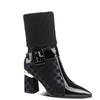 Женская обувь Новый стиль Толстый каблук Эластичная ткань Женские ботинки Зима Новые Острый носок Молния Модные Ботильоны на высоком каблуке Женские