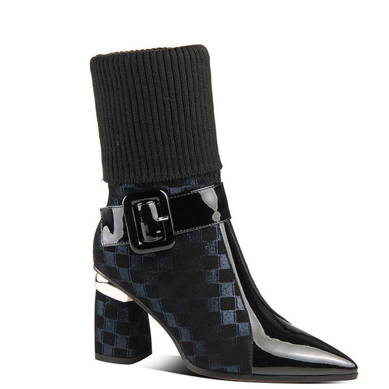 Женская обувь Новый стиль Толстый каблук Эластичная ткань Женские ботинки Зима Новые Острый носок Молния Модные Ботильоны на высоком каблуке Женские — купить товар онлайн с бесплатной доставкой по всему миру!