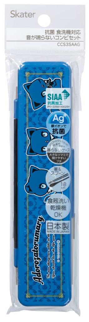 Skater Chopsticks and Spoon Combo Bento Adult Silent Silicone Made in Adrosa Tormarie Set, 18cm, Antibacterial, Box, Size, Cushion, Japan, CCS3SAAG-A