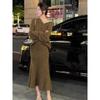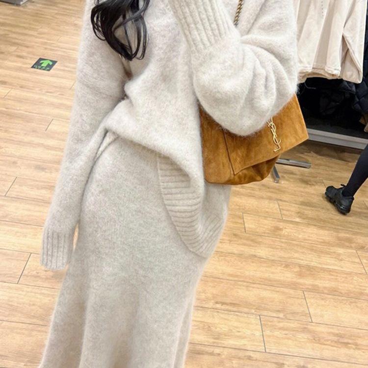 Раннеосенний ретро комплект свитера с V-образным вырезом и миди-юбки «рыбий хвост» для женщин