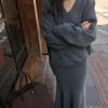 Раннеосенний ретро комплект свитера с V-образным вырезом и миди-юбки «рыбий хвост» для женщин — купить товар онлайн с бесплатной доставкой до всему миру!