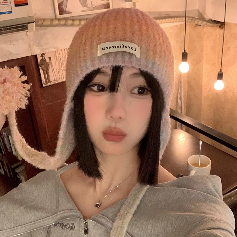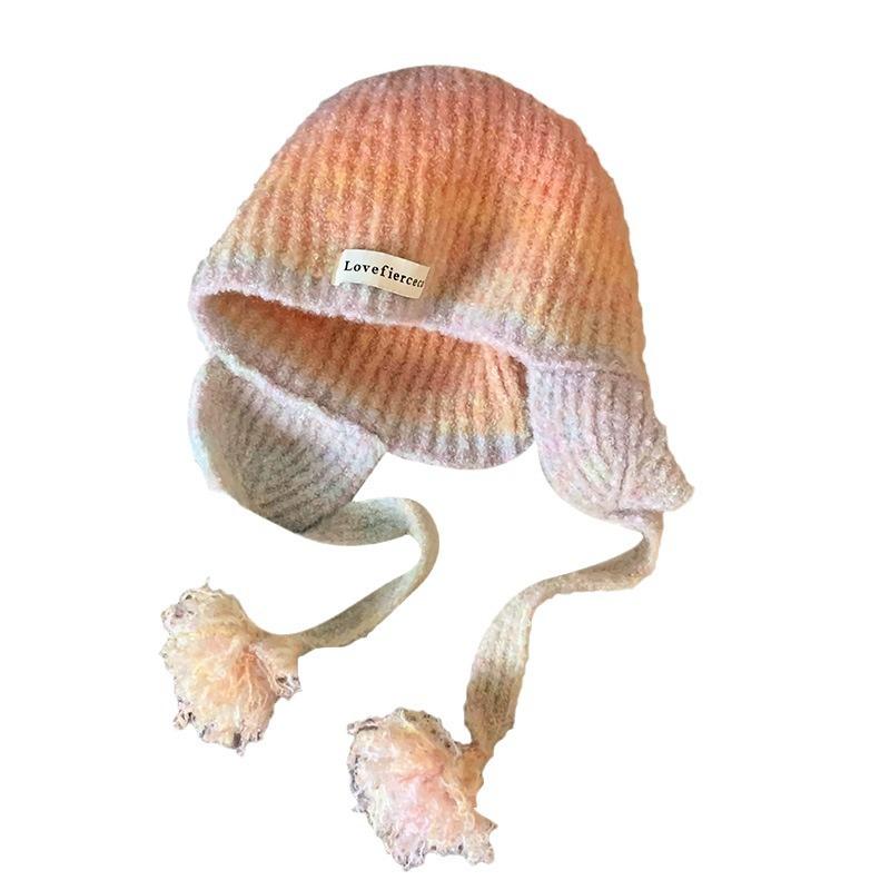 Pink Gradient Woolen Hat for Women in Autumn and Winter Korean Version All Match Face Showing Small Pullover Hat Ear Protecting Knitted Hat Trendy