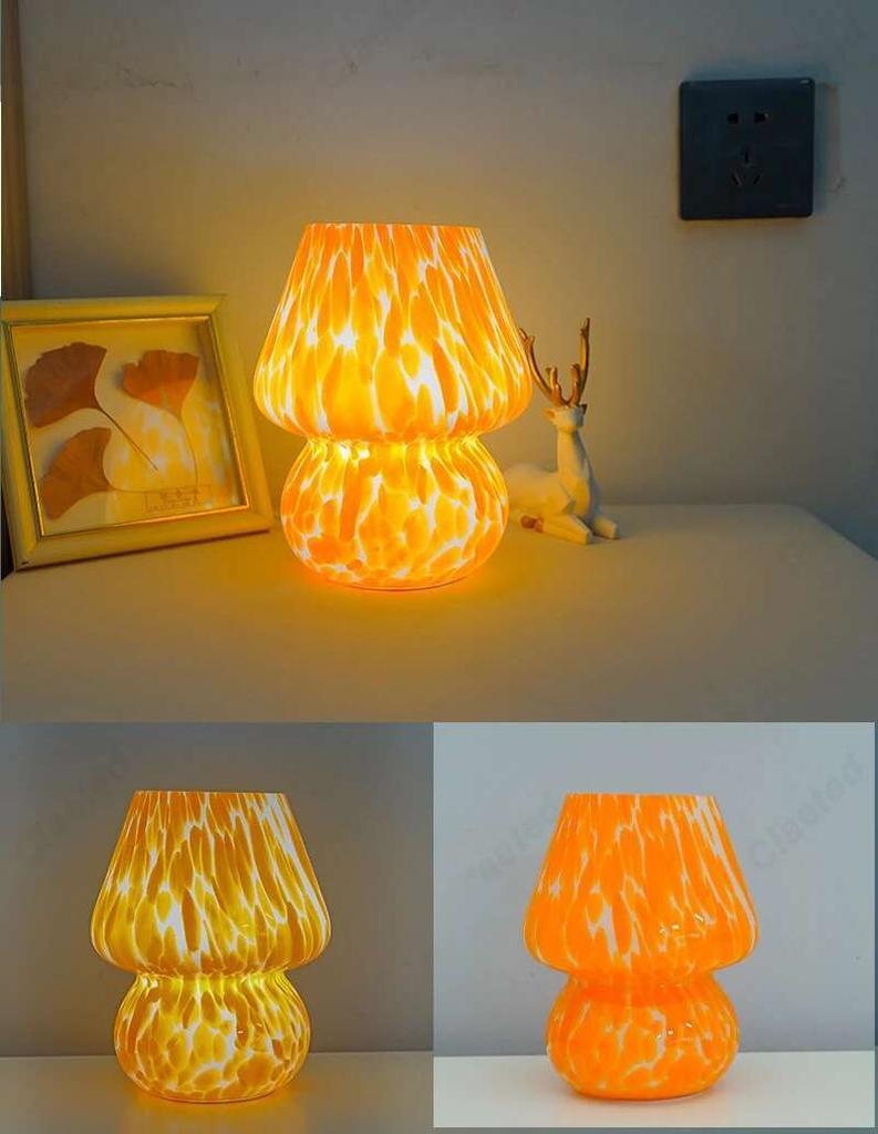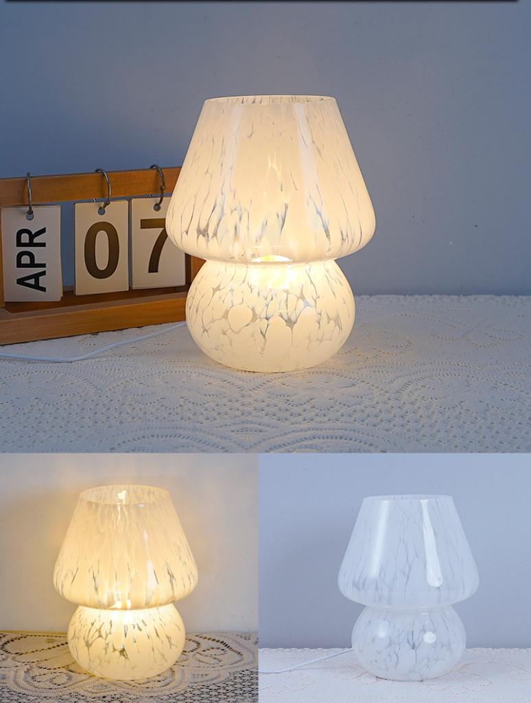 Стеклянная светодиодная USB настольная лампа в скандинавском стиле, гриб, настольный светильник для декора спальни, милый подарок