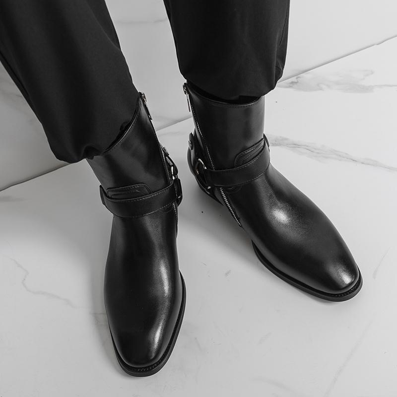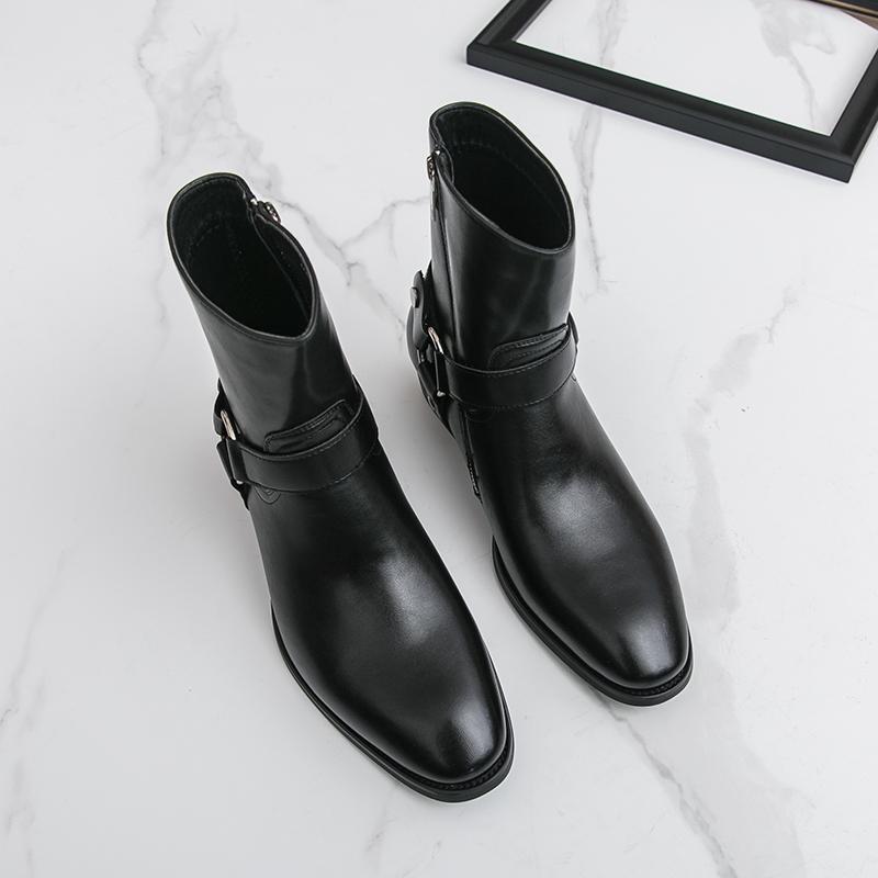 Мягкие и Удобные Ботинки Челси Брендовые Мужские Кожаные Повседневные Ботинки Хайтопы Модные Кожаные Ботинки на Боковой Молнии для Бизнеса