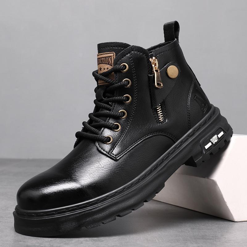 Мужские кроссовки из натуральной кожи с высоким верхом Новое поступление Мужские мотоботы Нескользящие мужские кроссовки Универсальные уличные ботильоны Botas