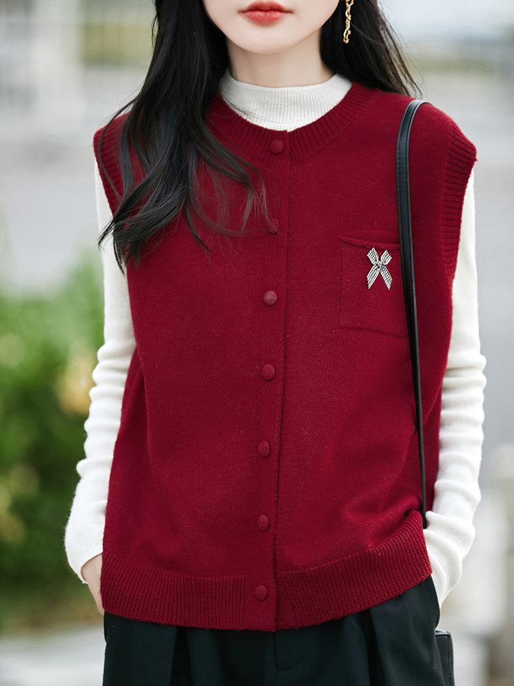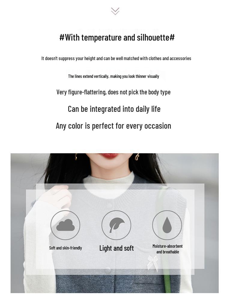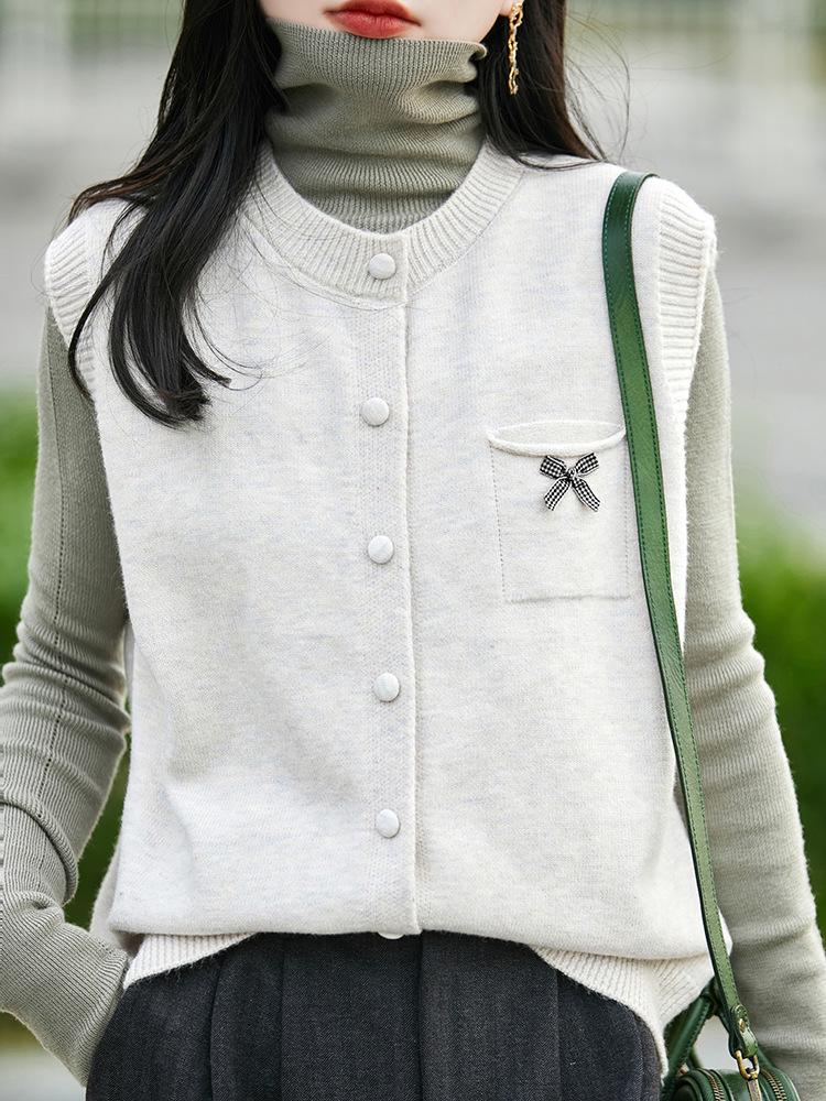 Женский шикарный серый вязаный безрукавный жилет - Круглый вырез, Свободный крой, Осенний многослойный топ