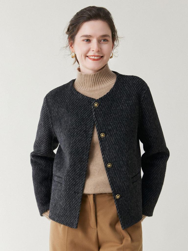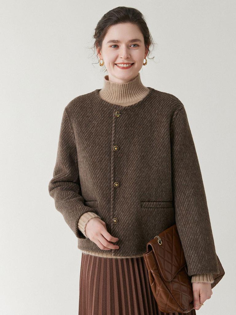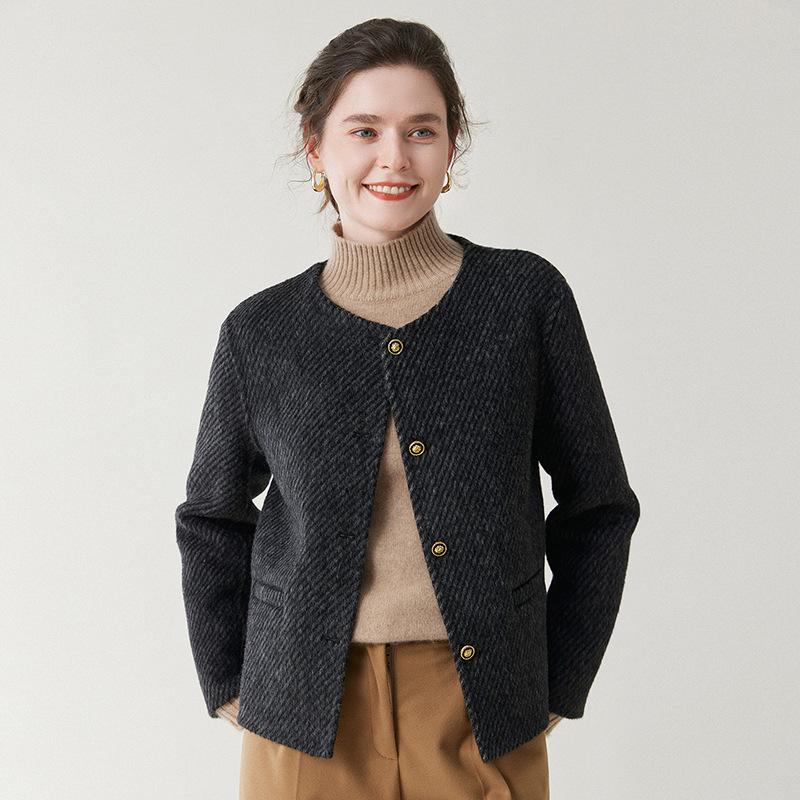 Women's Retro Double-Faced Wool Coat with Metal Buckle - Short/Long, Thickened for Autumn/Winter