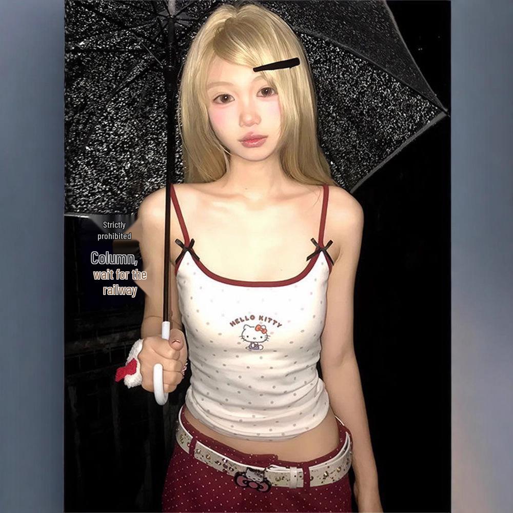 Ретро Корейский Острый Девушка Hello Kitty Майка - Облегающий Летний Жилет с Цветными Блоками — купить товар онлайн с бесплатной доставкой по всему миру!