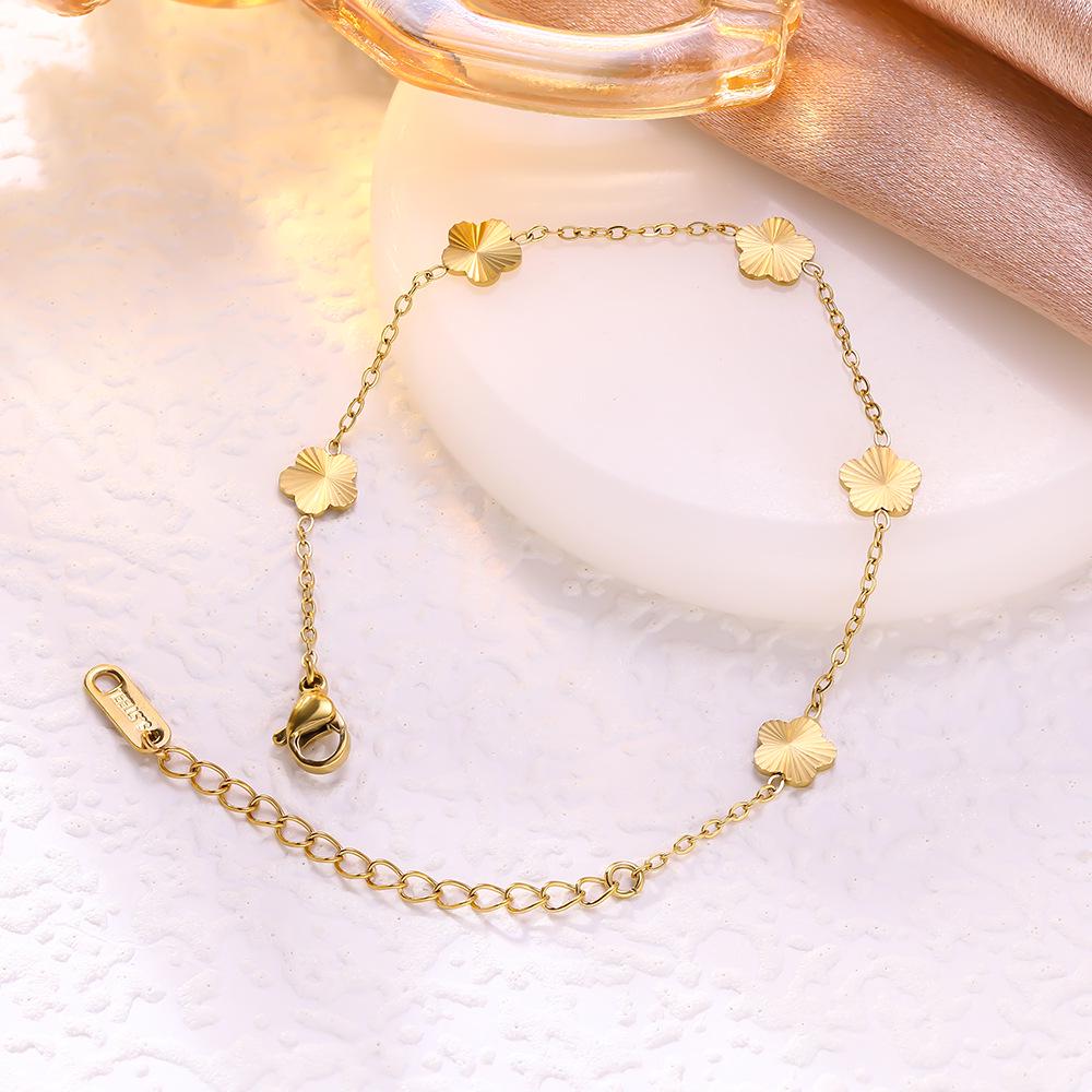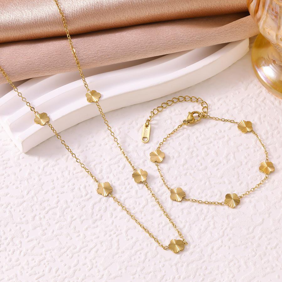 9mm Solid Titanium Steel 18K Gold Five-Petal Flower Mini Bracelet Necklace for Women - Light Luxury Frosted Jewelry