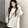 Женский универсальный хлопковый топ с длинным рукавом и круглым вырезом с принтом - Свободный крой для весны и осени 2025 — купить товар онлайн с бесплатной доставкой по всему миру!