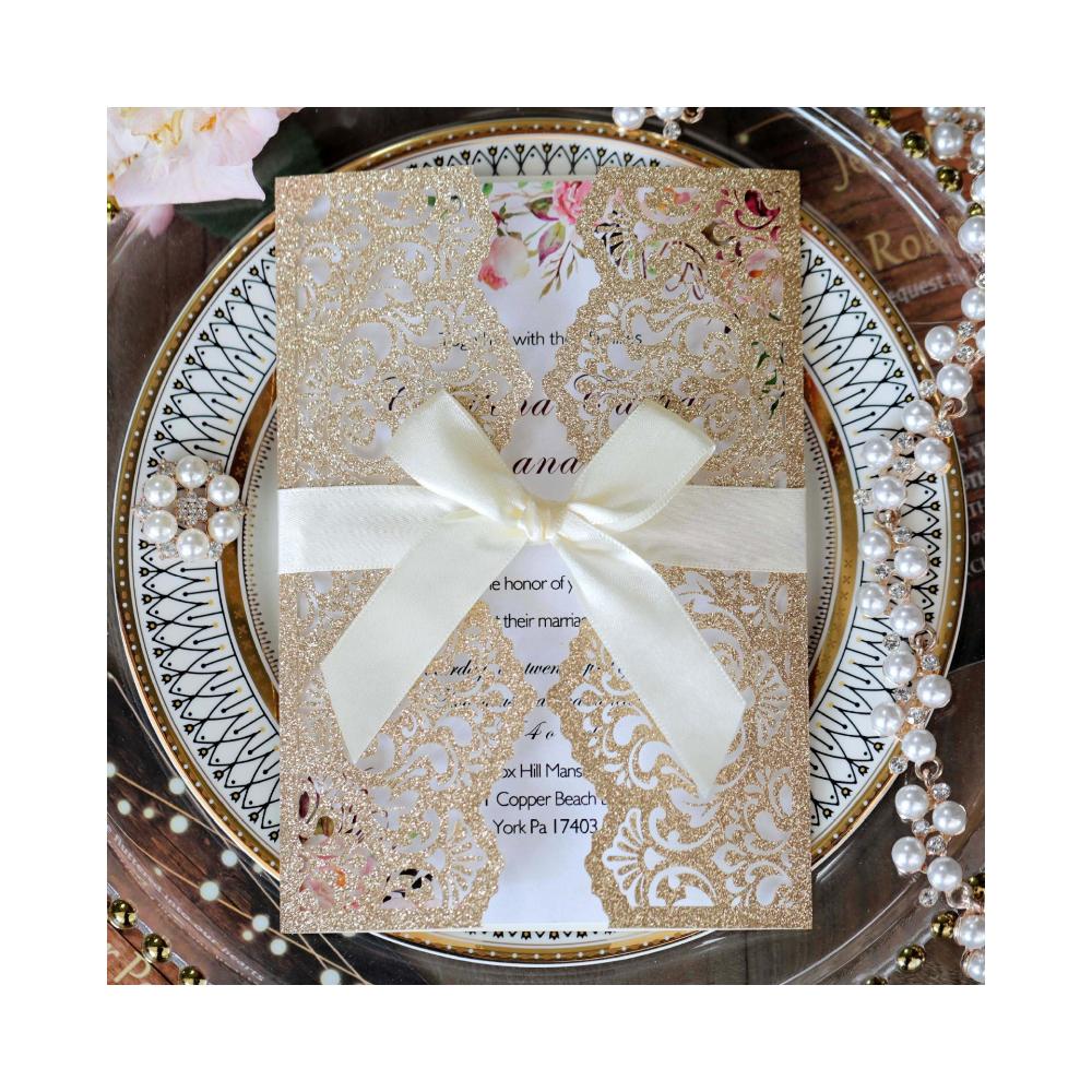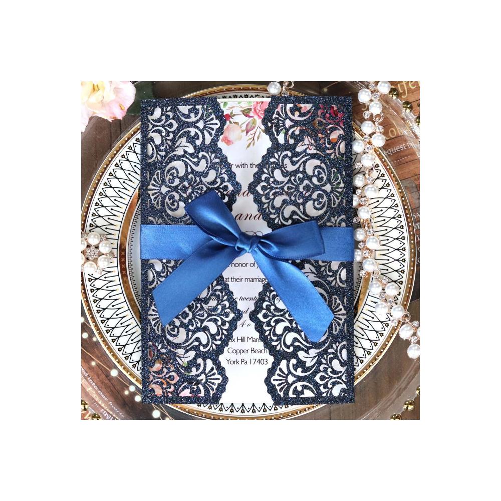 10 шт. Блестящая пригласительная открытка с лентой Поздравительные открытки Свадьба Маридж Приглашение Вечеринка Крещение Бар-мицва Вечеринка Украшение