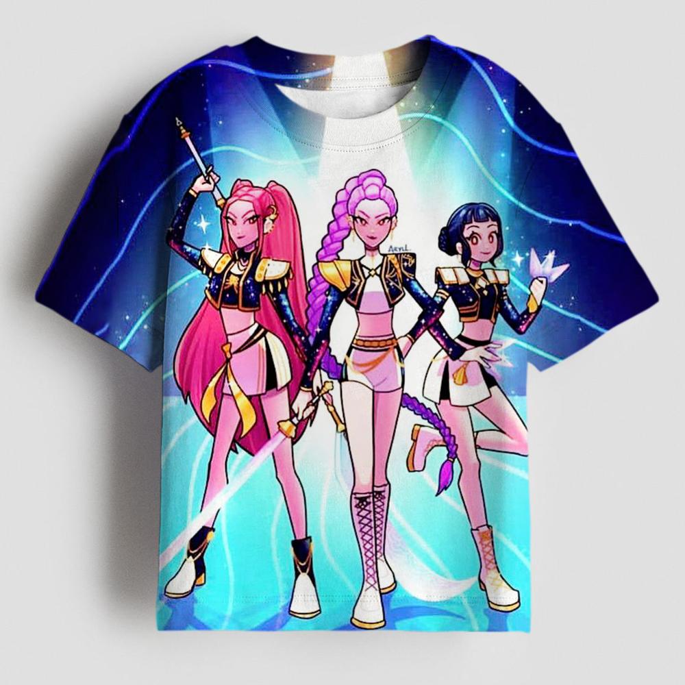Топ женской группы K-POP серии, футболка для девочек KPOP Demon Hunters, детская мультяшная футболка 3-14 лет