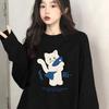 Модная женская футболка с длинным рукавом и круглым вырезом из чистого хлопка - Шикарный мультяшный дизайн, Повседневный свободный крой для весны и осени 2025