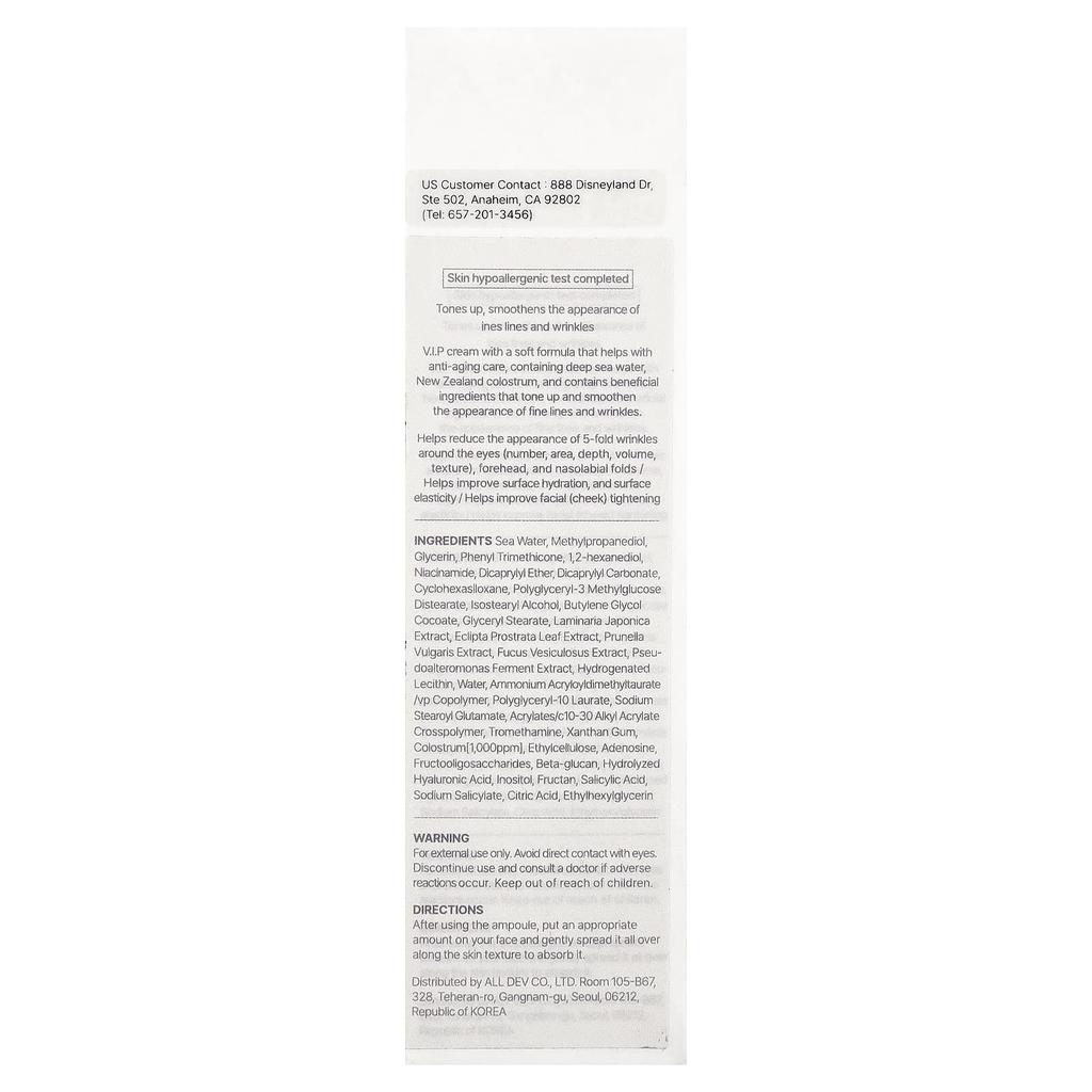 seawater, methylpropanediol, glycerin, phenyl trimethicone, 1,2-hexanediol, niacinamide, dicaprylyl ether, dicaprylyl carbonate, cyclohexasiloxane, polyglyceryl-3 methyl glucose distearate, isostearyl alcohol, butylene glycol cocoate, glyceryl stearate, laminaria japonica (kelp) extract, eclipta prostrata (eclipta prostrata) leaf extract, prunella vulgaris (lamiaceae) extract, fucus vesiculosus (bladderwrack) extract, pseudomonas ferment extract, hydrogenated lecithin, purified water, ammonium acryloyldimethyl taurate/vp copolymer, polyglyceryl-10 laurate, sodium stearoyl glutamate, acrylates/c10-30 alkyl acrylate crosspolymer, tromethamine, xanthan gum, colostrum [1,000 ppm], ethylcellulose, adenosine, fructooligosaccharide, beta-glucan, hydrolyzed hyaluronic acid, inositol, fructane, salicylic acid, sodium salicylate, citric acid, ethylhexylglycerin.