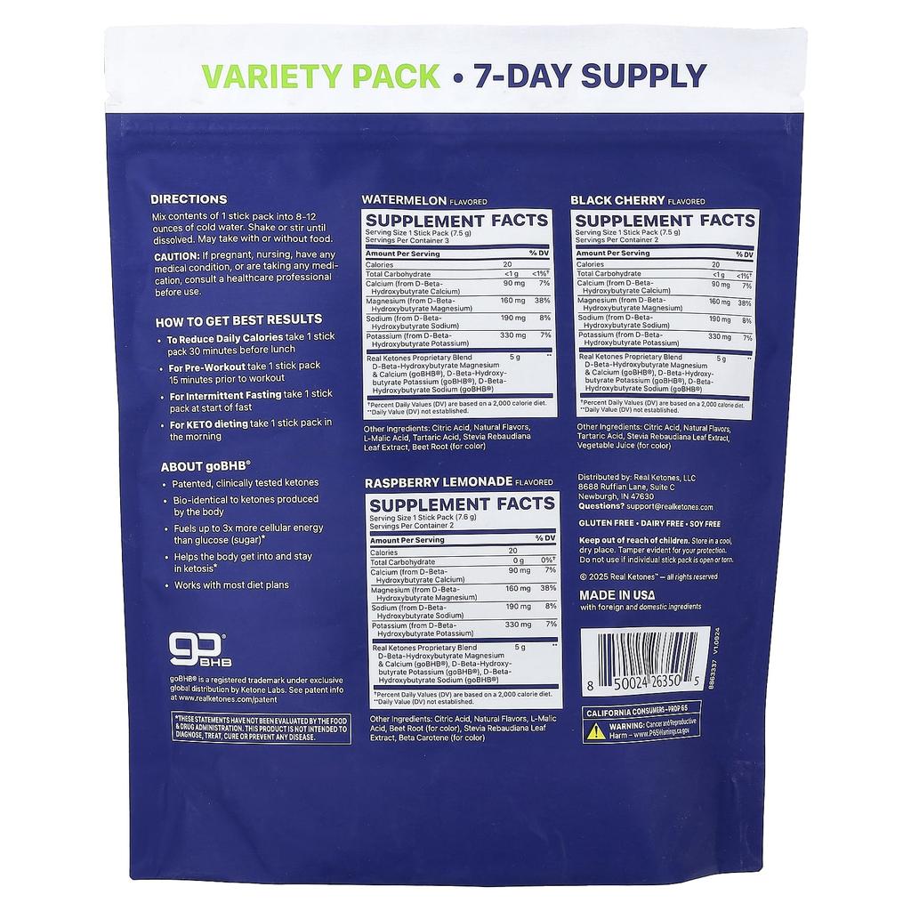 Real Ketones, Shift, Variety Pack, Watermelon, Black Cherry, Raspberry Lemonade, 7 Stick Packs, 53g (1.9oz)